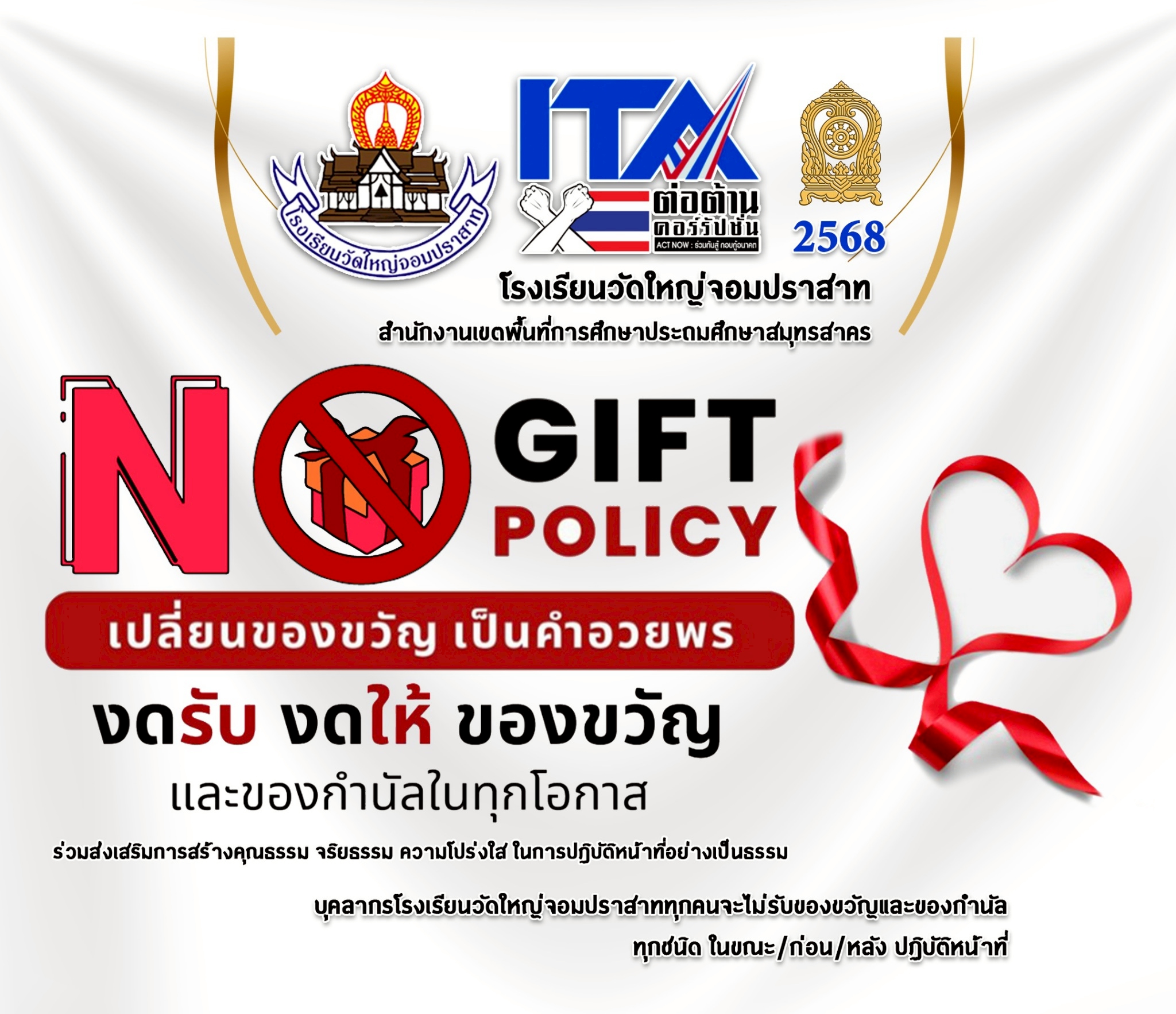 ประกาศเจตนารมณ์และการสร้างวัฒนธรรม ตามนโยบาย No Gift Policy จากการปฏิบัติหน้าที่